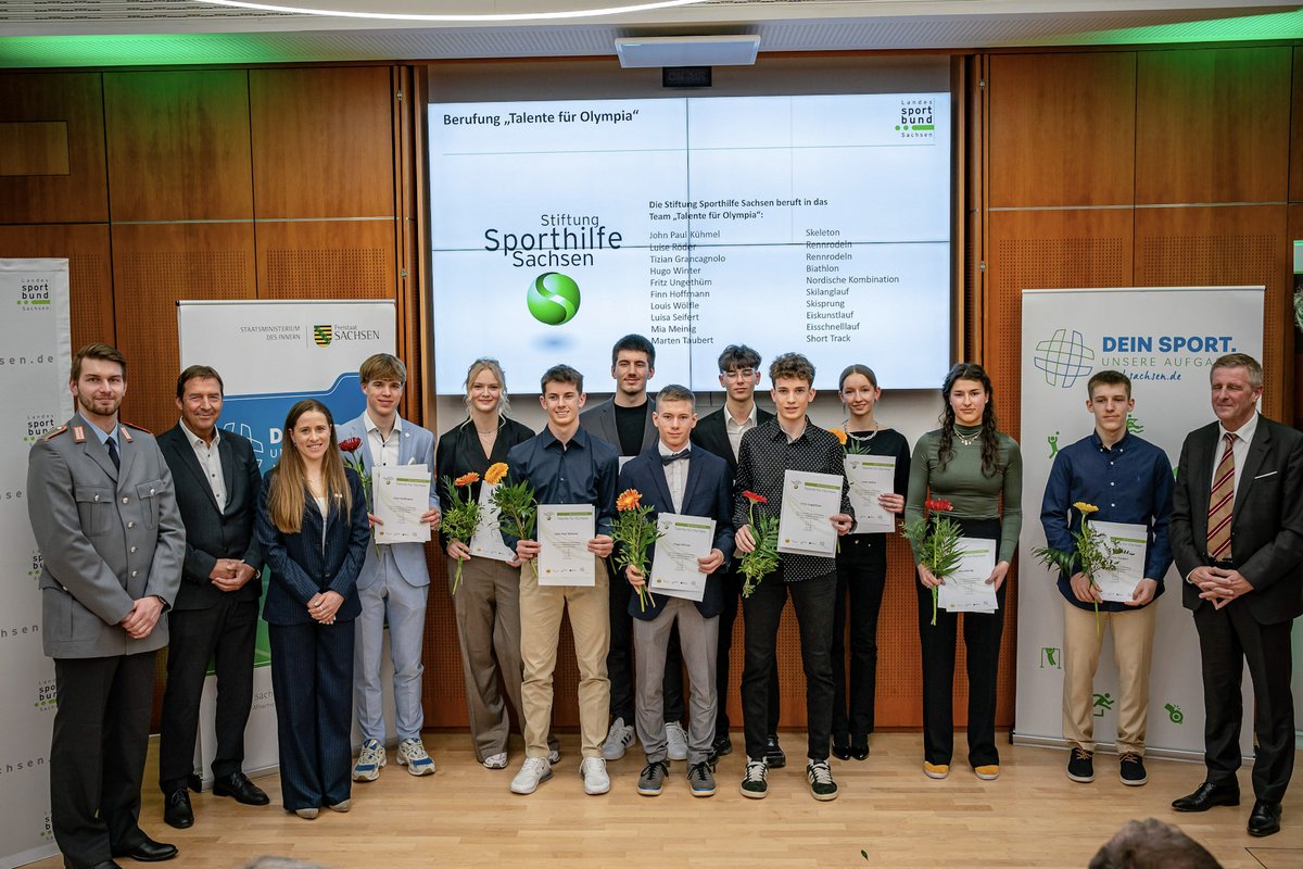 Im Rahmen der diesjährigen Wintersportlerehrung wurden zehn neue Talente in das Förderteam aufgenommen: John Paul Kühmel (Skeleton), Luise Röder (Rennrodeln), Tizian Grancagnolo (Rennrodeln), Hugo Winter (Biathlon), Fritz Ungethüm (Nordische Kombination), Finn Hoffmann (Skilanglauf), Louis Wölfle (Skisprung), Luisa Seifert (Eiskunstlauf), Mia Meinig (Eisschnelllauf) und Marten Taubert (Short Track). Die Berufung erfolgte durch die Stiftung Sporthilfe Sachsen gemeinsam mit den Olympiateilnehmenden Katharina Hennig Dotzler und Timon Grancagnolo, der für einen kleinen emotionalen Moment sorgte, denn er konnte seinen jüngeren Bruder (Tizian Grancagnolo) im „Talente für Olympia“-Team begrüßen.